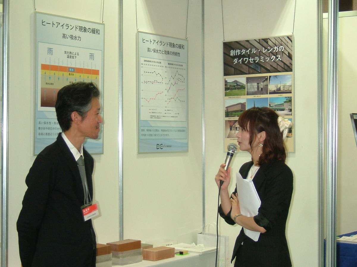 ダイワセラミックス株式会社は、「あいちの環境ビジネス発信事業紹介」ブースに出展、窯業未利用資源キラを有効活用した、ヒートアイランド現象の緩和に貢献する舗装用の高保水性セラミックブロック「モイストペーブ®」を展示・紹介しました。 大村愛知県知事のご来場、展示ブースでのナレーションをつけた企業PR・商品PR、建設コンサルタント・設計事務所・施工業者・ゼネコン・行政・施主・建材商社等多数の展示ブースへのご来場をいただき大盛況でした。 開会式